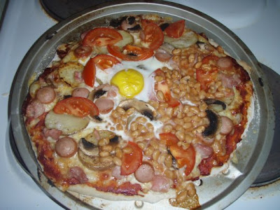... imaginem um pequeno almoço inglês... Feijões, bacon, salsichas, ovos...